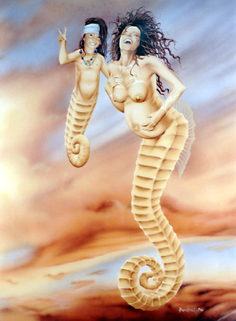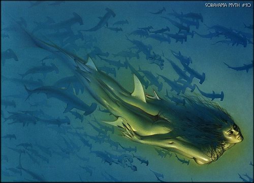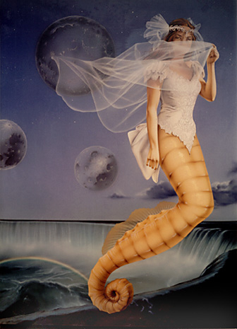 在航海史上曾经有这样的传说:一天,一艘威尼斯商船正从印度返航,当天夜晚,皓月似银,海平如镜,水手们忽然看见水面远处出现一个人身尾鱼的美人,裸着胸怀,抱着恬静吸奶的婴儿,但等到他们驶近,却什么也不见了。